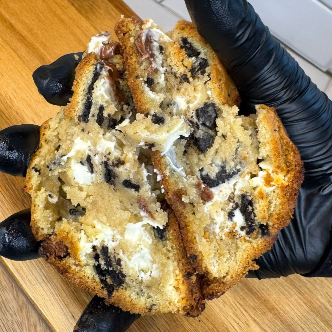 A vanilla cookie that's crisp on the outside, soft and fluffy on the inside, with the perfect balance of sweetness and texture. White and milk chocolate chips melt into every bite, providing creaminess and an indulgent touch. To make it even more irresistible, Oreo cookie pieces are mixed into the dough, creating a delicious contrast between softness and crunch. Ideal for chocolate and cookie lovers, this combination is simply addictive.